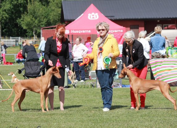 In Jämsä all breeds Pharaoh Hounds were judged by Zilnik Zeljko. Skumpan, Northgate's Dom Perignon was BOB, Victor (Northgate's Nothing Else Matters) BM-2 with CC and Britney (Northgate's Northside Special) BOS with CC. Italian Greyhound Armas (Northgate's L' Anarchiste) was BM-2 and Jolie (Arkita's Romanza) BB-2.