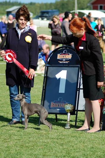 Italian Greyhound Armas, Northgate's L'Anarchiste, was BOS with CC & cacib and became Finnish Champion!