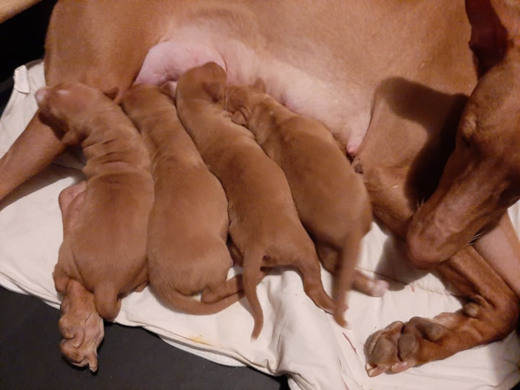 | We got puppies!! Let me introduce our W-litter: Two boys and three girls were born. Sadly one boy didn't make it, | |