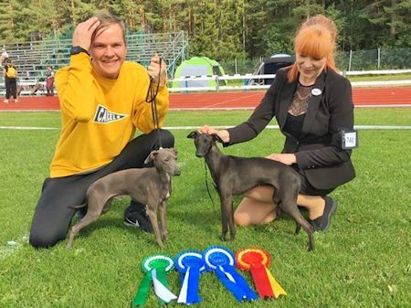 | Italian greyhounds were judged by Mrs Marjatta Pylvännäinen-Suorsa. Sulevi and Vickan were shown first time | |