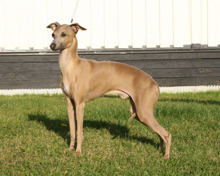 "Superelegant hane av härlig typ, utmärkta propotioner, vackert huvud och utryck, korrekt bett, Bra öron, underbar hals och hals ansättning, utmärkt front, synnerligen vacker över och underlinje, välvinklat bakställ, rör sig mycket rastypiskt från men kunde ta ut steget något, lite instabil fram och bak, utmärkt päls och hud"Bitte Ahrens